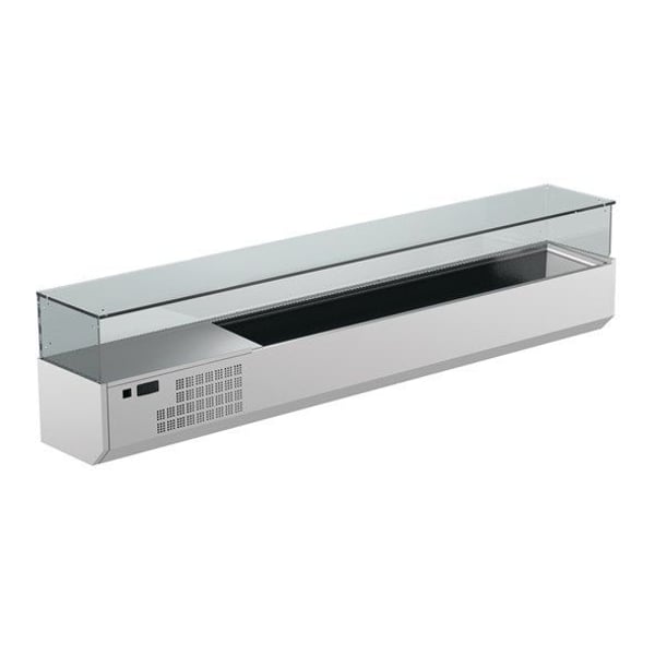 Настільна барна вітрина призначена для короткочасного зберігання та демонстрації, попередньо охолоджених продуктів (салатів, закусок, гарнірів) у магазинах, кафе, барах, ресторанах та суші-барах. Найбільш широко застосовується у піцеріях для зберігання топінгу (начинки для піци).