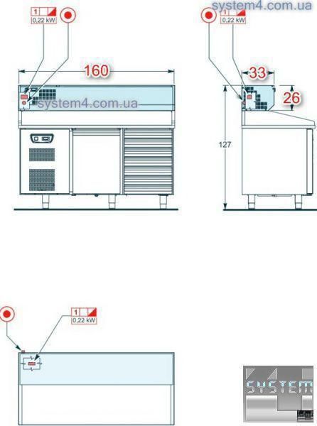 Настільна барна вітрина призначена для короткочасного зберігання та демонстрації, попередньо охолоджених продуктів (салатів, закусок, гарнірів) у магазинах, кафе, барах, ресторанах та суші-барах. Найбільш широко застосовується у піцеріях для зберігання топінгу (начинки для піци).
