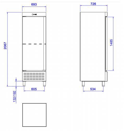 Регульовані ніжки виготовлені з нержавіючої сталі. Одні двері з автоматичним блокуючим пристроєм та вентилятори зупиняються під час відкриття дверей. Епоксидні полиці та підставки для піддонів з нержавіючої сталі, що регулюються по висоті.