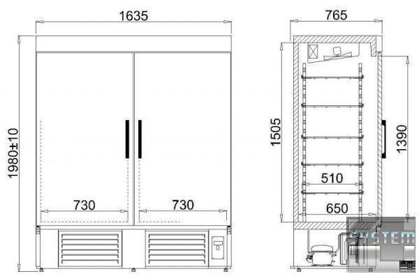 | Габаритні розміри столу/вітрини [мм]: | 1635 х 765 х 1980 |