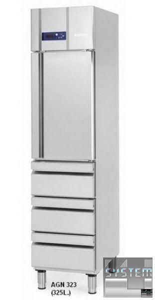 Холодильна шафа для гастрономії з трьома висувними ящиками та одними дверима, slim-серія, об'єм 325 л, температурний режим -2/+8С, кліматичний клас +43С, електронна панель управління, вентильована камера з гігієнічним виконанням, автоматична розморозка з напрямними, матеріал виконання нерж.
