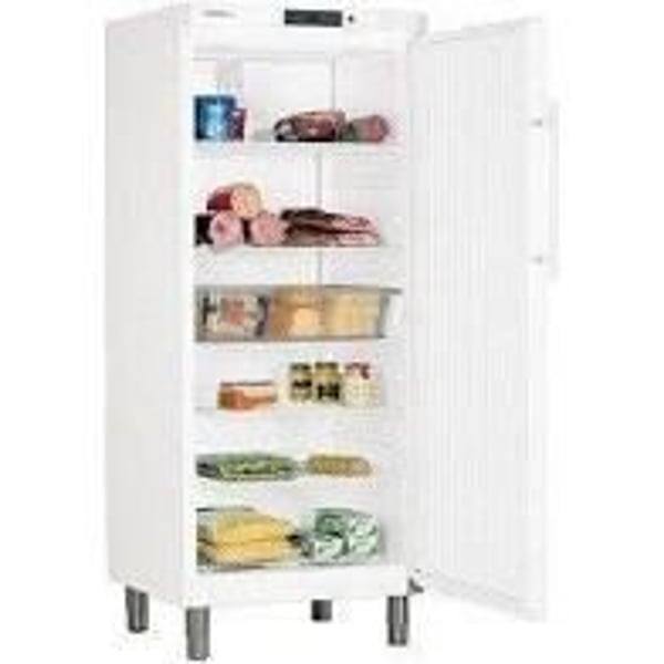 Ця холодильна шафа має дуже низьке енергоспоживання та вартість. Шафа Лібхер (Австрія) GKv 5710 має електронну систему регулювання температури в діапазоні від +1 до +15°С. Шафи Liebherr із системою динамічного охолодження з рівномірним розподілом холоду по всій камері. Система вентиляції збереже мікроклімат навіть при частому відчиненні дверей, при відчиненні дверей – вентилятори зупиняються для економії енергії. Автоматичне розморожування гарантує безперебійну роботу та зберігає ваш час. Ево використовують у ресторанах, кухнях підприємств HoReCa. Корпус холодильника виконаний із сталі, пофарбованої у білий колір. Використовується безпечний для довкілля вуглеводневий холодоагент R 600a. При розмірах 750х750х1864 має об'єм 583 л, та вага 976кг. Двері з дизайном SwingLine мають ергономічну ручку із системою самозакривання при вугіллі менше 90° та сигналізацією при відчинених дверях. Двері не мають виступаючих елементів, є опція перевішування дверей. Холодильна камера із міцної пластмаси без швів, отвором для зливу води, легко миються. Будь-які грати здатні витримати вагу до 60 кг.