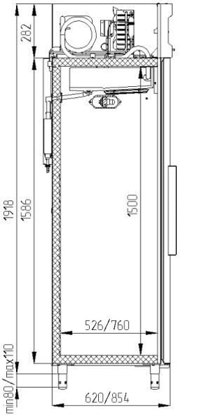 Динамічна система охолодження. Ціліснозаливний корпус забезпечує надійну герметизацію, міцність та жорсткість конструкції, оптимальну термоізоляцію. Комплектуючі провідні європейські виробники. Верхнє розташування агрегату покращує теплообмінні властивості. Автоматичне розморожування з випаровуванням конденсату. Як терморегулятори використовують електронні блоки управління. Двері мають ПВХ ущільнювач із магнітною вставкою для найкращої герметизації. Ніжки регулюються по висоті. «Самозакривання» дверей.