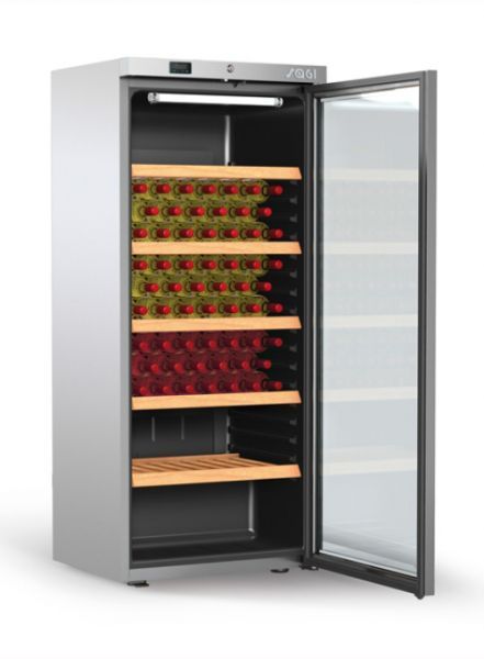 Холодильна шафа SAGI 400 Lt F40EV об'ємом 400 літрів, що є вітриною для зберігання та експонування вин. Елегантна функціональна холодильна шафа гарантує якість та експлуатаційні характеристики продукції. Каркас зовнішньої структури, що несе, зроблений з нової сталі, на якій не залишаються відбитки пальців. Внутрішня частина каркаса, що несе, зроблена з пластмасового матеріалу АБС чорного кольору.