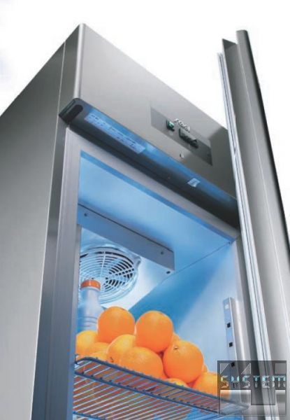 Несучий корпус із поліуретановою ізоляцією товщиною 75 мм без використання CFC. Реверсивні двері оснащені системою автоматичного закриття при відкритті до 90°. Ніжки з нержавіючої сталі AISI 304, що регулюються по висоті. Система кріплення решіток зі сталі інокс AISI 304, що легко знімається, на 20 позицій. Є моделі з глибиною 73,5 см (мод. ...60... ; ...130...). Робочі температури: 0/+10°C; -22/-15°C. Є моделі з двома роздільними секціями, що охолоджуються двома незалежними моторними блоками. Цифрова панель керування термометром-термостатом. Автоматичне розморожування з автоматичним випарюванням конденсату. Система охолодження вентильованого для рівномірного розподілу холоду всередині камери. В оснастці: три пари напрямних із сталі інокс AISI 304 та три грати для кожної секції.