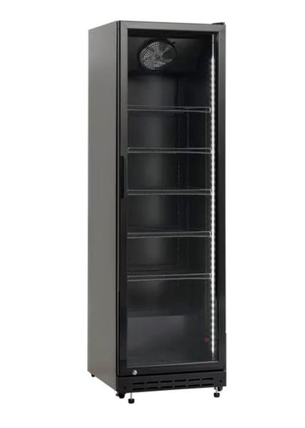 Барна холодильна шафа чорна зовні та всередині призначена для короткочасного зберігання напоїв, їх експозиціонування та продажу в магазинах, ресторанах.