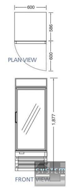 Корпус виконаний з оцинкованої сталі із застосуванням поліуретанової теплоізоляції високої густини, всередині шафи розташовані 4 полиці, які виготовлені з товстого дроту з вініловим покриттям. Скляні відчинені двері дозволяють побачити всю представлену продукцію.