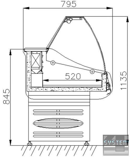 Середньотемпературна холодильна вітрина Блюз-економ BС призначена для оснащення супермаркетів, підприємств громадського харчування як з виносними, так і з вбудованим холодильними агрегатами. Опція – додаткова скляна полиця.