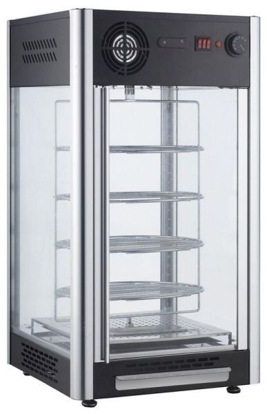 Пристроєм вітрини передбачені чотири круглі хромовані полиці, що обертаються, з LED - підсвічуванням, цифровий регулятор температури, обладнана прямим склом, скляною кришкою і задні дверцята вітрини розсувна.