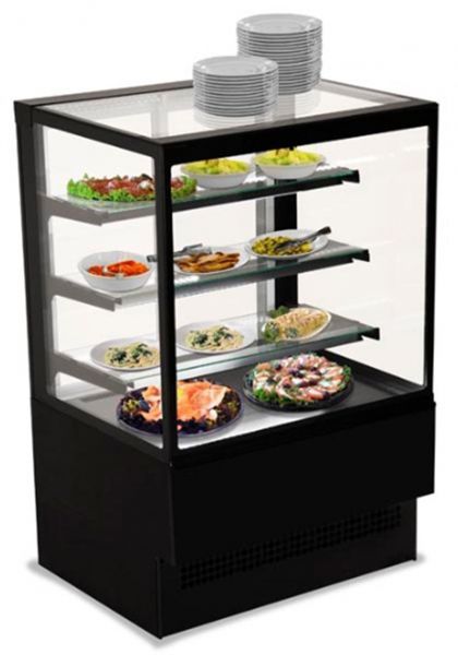 Холодильна вітрина DGD EVO90 розроблена спеціально для гастрономії та кондитерських виробів, готових страв, салатів тощо. Вітрина обладнана прямим склом, скляною кришкою, трьома полицями з підсвічуванням, задні дверцята - розсувні.