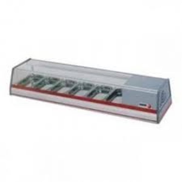 Настільна вітрина Fagor VTP-139Р - оптимальний варіант для рибних ресторанів, суші-барів, де потрібна викладка невеликих порцій продукції. Призначена для демонстрації та короткочасного зберігання у торгових залах харчових продуктів (м'ясо, рибні, ковбасні та молочні продукти, кондитерські вироби та ін.). Зберігає продукти свіжими, захищає від пересихання, що особливо важливо для морепродуктів. Задня скляна стінка оснащена дверцятами, що розсуваються, для зручного доступу до страв.