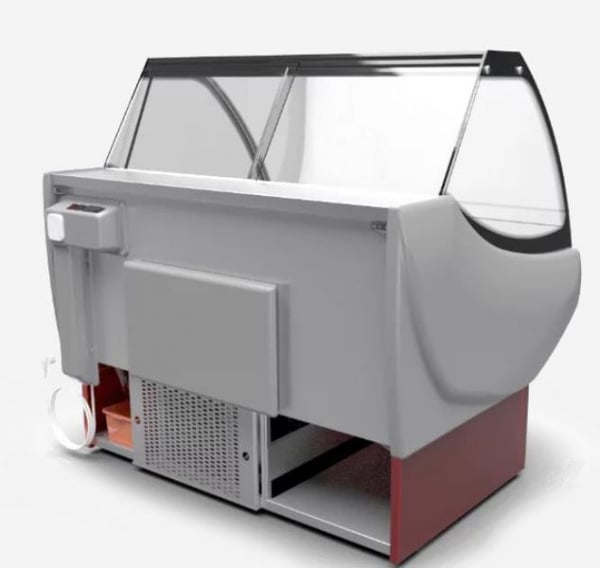 Демонстраційна частина вітрини та полиця продавця виконані з високоякісної нержавіючої сталі. Особливістю вітрини є сучасний дизайн, глибока викладка та автоматичне відтаювання.