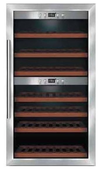 Дана модель вміщує до 66 пляшок . Контроль температури з двома зонами з розділеним налаштуванням температури +3 ⁰С / 22 ⁰С . Активна циркуляція кожної зони для розподілу температури. Устаткування оснащене енергозберігаючим блакитним світлодіодним освітленням LED дисплея температури та внутрішньої камери. Безшумна робота компресора. Двері виконані з нержавіючої сталі зі скляним віконцем. Скло безпечне, з UV фільтром . Полиці дерев'яні та легко виймаються.
