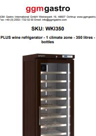 Кліматична шафа для зберігання вин GGM WKI350 об’ємом 350 л – призначена для охолодження та тривалого зберігання різних сортів вина, підтримуючи рівень вологи, сприяючи дозріванню вина, захищаючи його від вібрацій та зовнішнього впливу. Це дуже зручне і необхідне професійне обладнання на кухні будь-якого ресторану, кафе, бару і великих підприємствах.