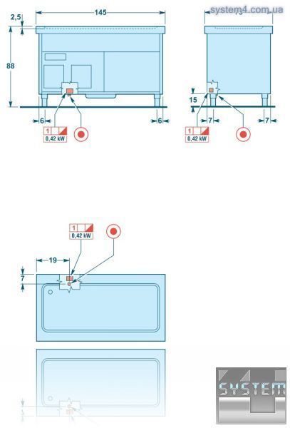 • ємності, що охолоджуються, робоча температура +2...+12 °C , висота 200 мм, вміщує близько 130 пляшок 0,5л. в 4 х 1/1 GN, і близько 200 в 6 х 1/1 GN;