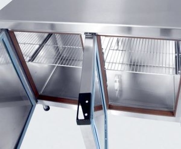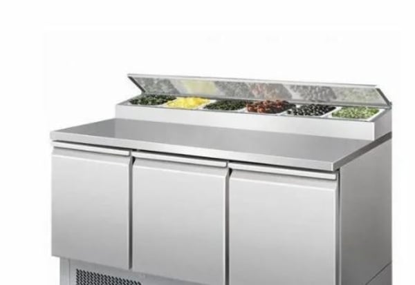 Стіл холодильний 3-х дверний COOLEQ PS300 призначений для зберігання харчових продуктів, які використовують для приготування піци, сендвічів, салатів та інгредієнтів до них в охолодженому стані. Усередині столу зберігаються тістові заготовки і проходять процес ферментації, на гранітній стільниці готують і укладають начинку, а в вітрині, що охолоджується, зберігається сама начинка. Це дуже зручне та необхідне професійне обладнання на кухні будь-якого ресторану, кафе, бару та великих підприємств. Перевага даного холодильного столу полягає у поєднанні робочої поверхні з холодильною камерою, що забезпечує комфортні умови для роботи кухаря та дозволяє використовувати робочий простір з максимальною користю – інгредієнти можна легко діставати і обробляти прямо на столі.