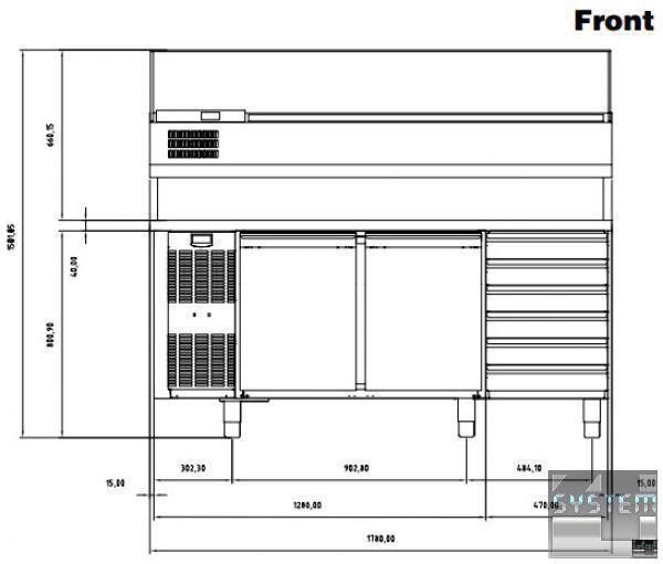 Професійний стіл з охолодженням має габаритні розміри: 1780мм (довжина), 700мм (глибина), 1501мм (висота).