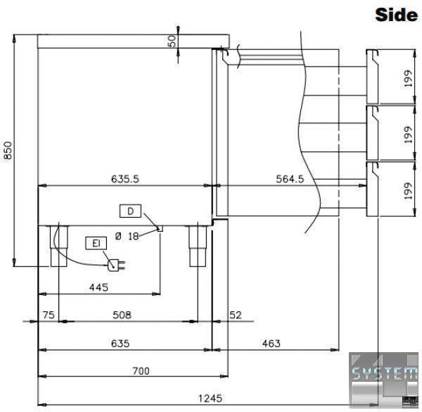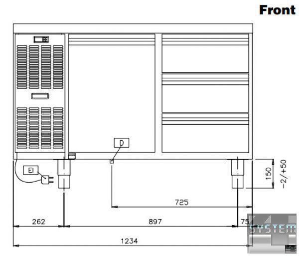 Професійний стіл з охолодженням має габаритні розміри: 1238мм (довжина), 700мм (глибина), 800мм (висота).