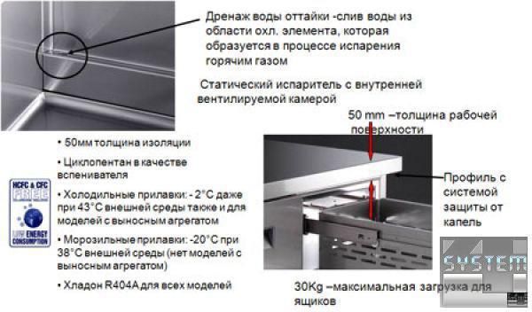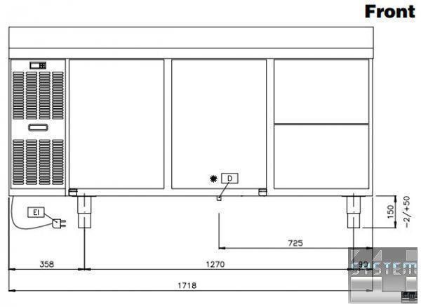 Професійний стіл з охолодженням має габаритні розміри: 1721мм (довжина), 700мм (глибина), 850мм (висота).