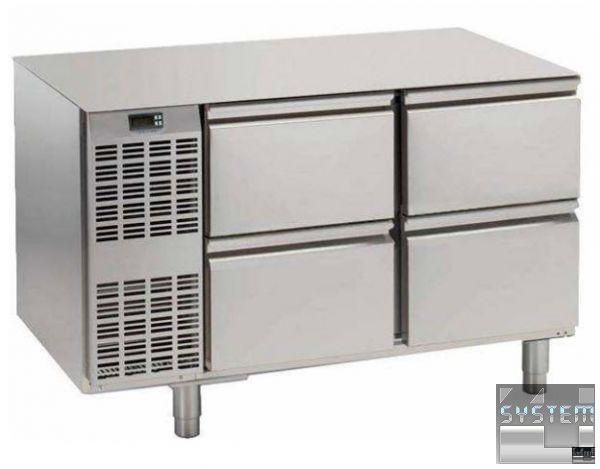 Холодильний стіл Electrolux 728555, без стільниці , об'ємом 265л., температурний режим роботи -2…+10°С, 4 висувні ящики 1/2, система автоматичного розморожування та випаровування, ізоляція товщиною 50мм., цифровий дисплей, клімат клас +43 , Злив, округлі кути, виконання нерж. сталь AISI 304
