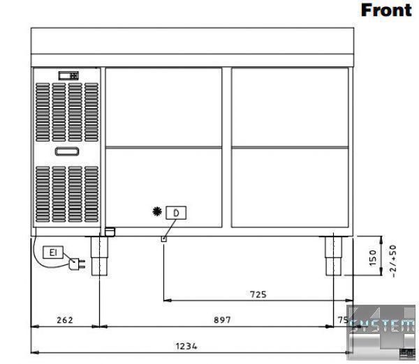 Професійний стіл з охолодженням має габаритні розміри: 1238мм (довжина), 700мм (глибина), 800мм (висота).