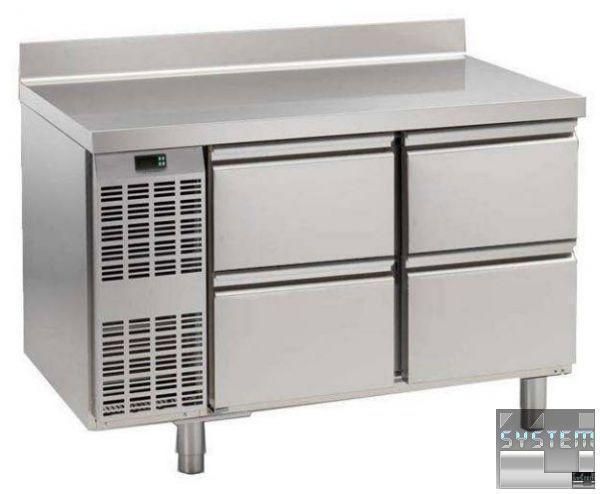 Холодильний стіл Electrolux 728531, з бортом, об'ємом 265л., температурний режим роботи -2…+10°С, 4 висувні ящики 1/2, система автоматичного розморожування та випаровування, ізоляція товщиною 50мм. , Злив, округлі кути, виконання нерж. сталь AISI 304