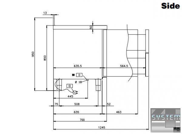 Професійний стіл з охолодженням має габаритні розміри: 2204мм (довжина), 700мм (глибина), 950мм (висота).
