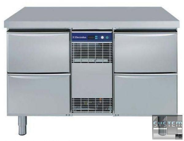 Холодильний стіл Electrolux 726552, без борту , об'ємом 290л., 4 висувні ящики 1/2, температурний режим роботи -2…+10°С, система автоматичного розморожування та випаровування, ізоляція товщиною 60мм., електронне мікропроцесорне управління з дисплеєм, 43°С, закруглені кути, модульна конструкція дверей, знижене енергоспоживання, виконання нерж. сталь AISI 304