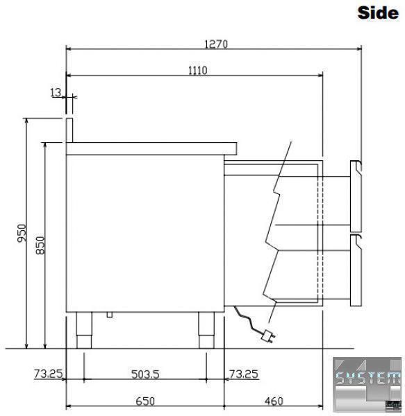 Професійний стіл з охолодженням має габаритні розміри: 1274мм (довжина), 700мм (глибина), 950мм (висота).