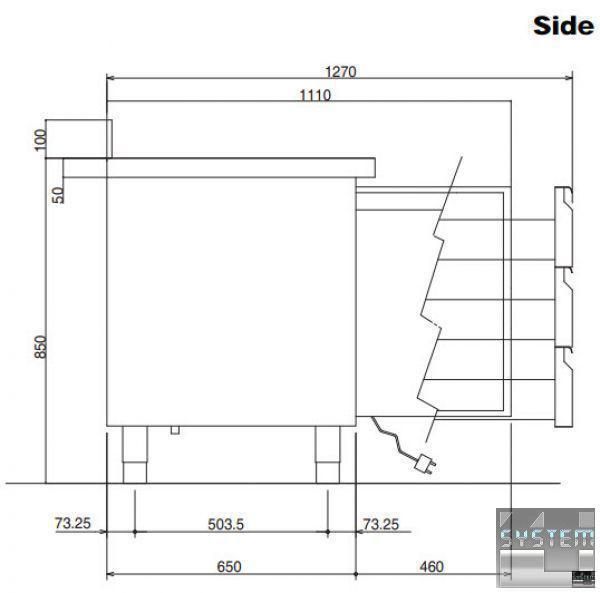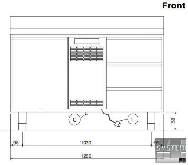 Професійний стіл з охолодженням має габаритні розміри: 1274мм (довжина), 700мм (глибина), 800мм (висота).