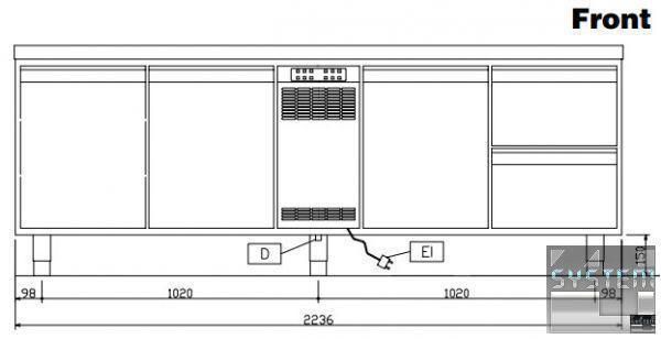Професійний стіл з охолодженням має габаритні розміри: 2244мм (довжина), 700мм (глибина), 850мм (висота).