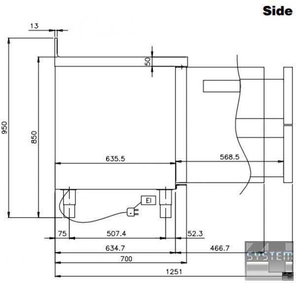 Професійний стіл з охолодженням має габаритні розміри: 1238мм (довжина), 700мм (глибина), 950мм (висота).