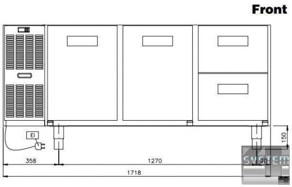 Професійний стіл з охолодженням має габаритні розміри: 1721мм (довжина), 700мм (глибина), 800мм (висота).
