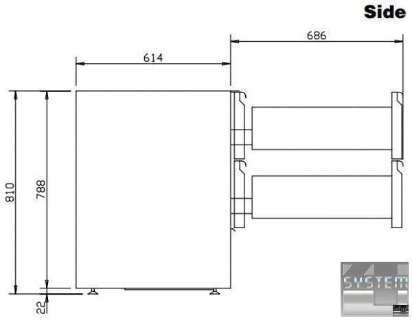 Професійний стіл з охолодженням має габаритні розміри: 955мм (довжина), 700мм (глибина), 810мм (висота).
