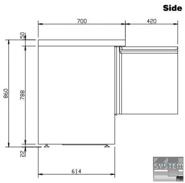 Професійний стіл з охолодженням має габаритні розміри: 955мм (довжина), 700мм (глибина), 860мм (висота).
