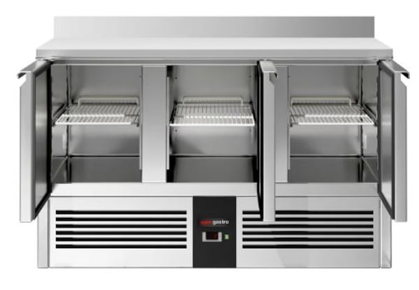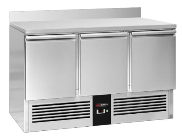 Стіл холодильний 3-х дверний GGM SAG147EAND призначений для недовготривалого зберігання продуктів і напоїв, а також для розкочування тіста, обробки інгредієнтів для приготування страв на підприємствах громадського харчування та торгівлі. Перевага даного холодильного столу полягає у поєднанні робочої поверхні з холодильною камерою, що забезпечує комфортні умови для роботи кухаря та дозволяє використовувати робочий простір з максимальною користю – інгредієнти можна легко діставати і обробляти прямо на столі. Крім того, холодильний стіл може використовуватися для розміщення різного допоміжного обладнання. Виконання PREMIUM забезпечує високу продуктивність із низьким енергоспоживанням (екологічність).