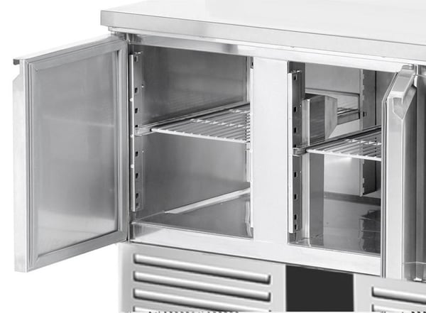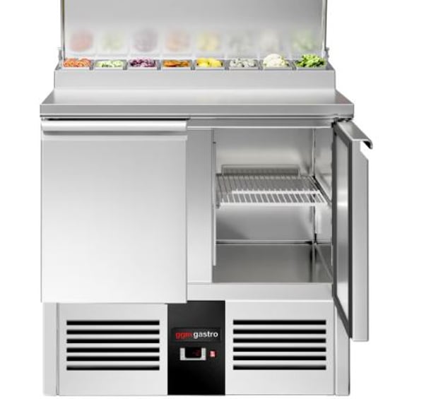 Стіл холодильний 2-х дверний GGM SAG97AND призначений для зручності приготування найпопулярнішої страви у меню багатьох закладів – піци: підходить для розкочування тіста, обробки інгредієнтів для приготування страв та довготривалого зберігання продуктів і напоїв на підприємствах громадського харчування та торгівлі. Перевага даного холодильного столу полягає у поєднанні робочої поверхні з холодильною камерою, що забезпечує комфортні умови для роботи кухаря та дозволяє використовувати робочий простір з максимальною користю – інгредієнти можна легко діставати і обробляти прямо на столі. Крім того, холодильний стіл може використовуватися для розміщення різного допоміжного обладнання. Виконання PREMIUM забезпечує високу продуктивність із низьким енергоспоживанням (екологічність).