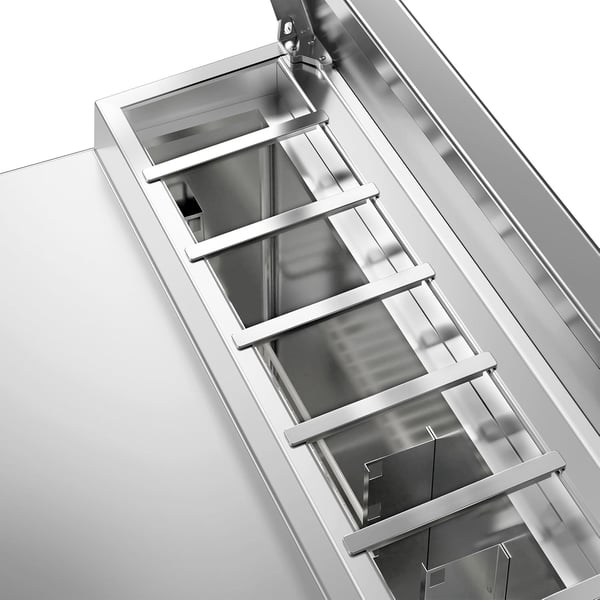 Функціонал столу дозволяє не лише зберігати різноманітні заготовки та інгредієнти, що найчастіше використовуються для приготування піци, а й працювати з ними на робочій поверхні.