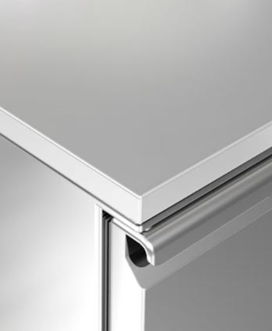 Стільниця виконана з високоякісної нержавіючої сталі і легко миється, що значно полугшує роботу з тістом. На стільниці зазвичай готують тістому основу для піци та укладають начинку.