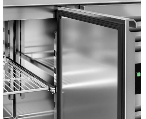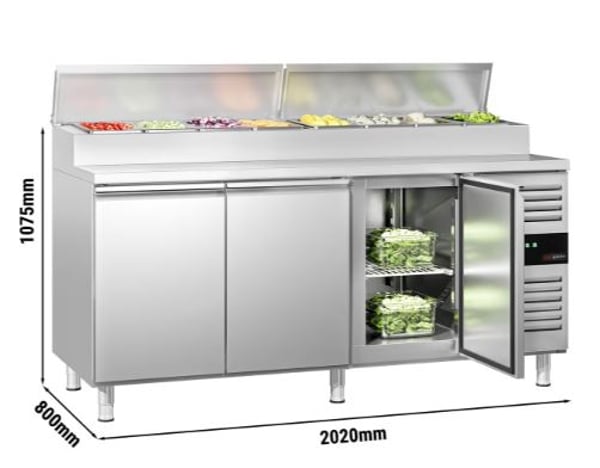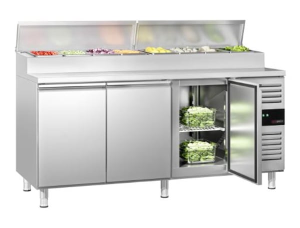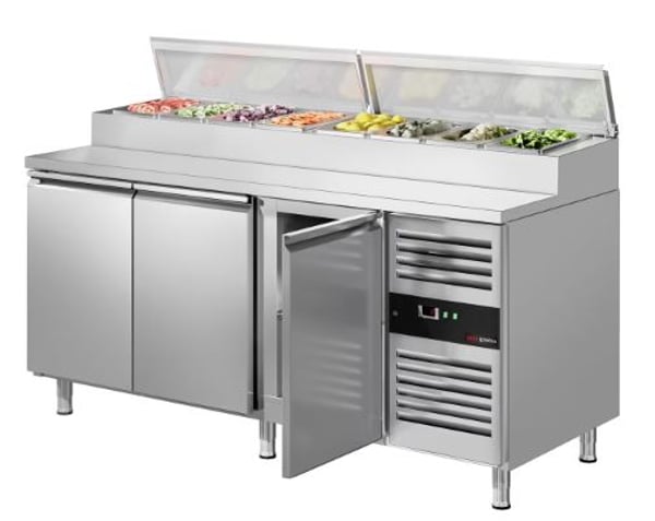 Стіл холодильний 3-х дверний GGM ZBG208ND призначений для зручності приготування найпопулярнішої страви у меню багатьох закладів – піци: підходить для розкочування тіста, обробки інгредієнтів для приготування страв та довготривалого зберігання продуктів і напоїв на підприємствах громадського харчування та торгівлі. Перевага даного холодильного столу полягає у поєднанні робочої поверхні з холодильною камерою, що забезпечує комфортні умови для роботи кухаря та дозволяє використовувати робочий простір з максимальною користю – інгредієнти можна легко діставати і обробляти прямо на столі. Крім того, холодильний стіл може використовуватися для розміщення різного допоміжного обладнання. Виконання PREMIUM забезпечує високу продуктивність із низьким енергоспоживанням (екологічність).