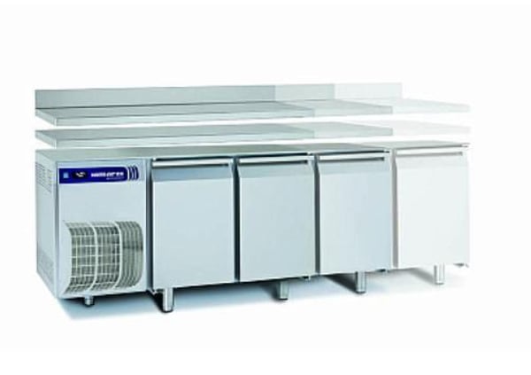 Чотирьохдверний холодильний стіл виготовлений з високоякісної нержавіючої сталі AISI 304, стійкої до низьких та високих температур, до корозії та з найкращим коефіцієнтом гігієнічності, виробляється в Італії, таким чином гарантується висока якість виробу та кожного його компонента.