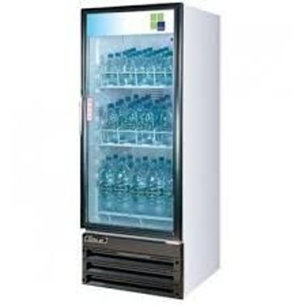 Усередині шафи розташовані 4 регульовані полиці, які виготовлені з товстого дроту з вініловим покриттям та витримують навантаження до 40 кг кожна. Скляні двері дозволяють побачити всю представлену продукцію.