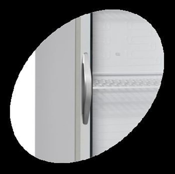 Посилена ручка забезпечує швидкий доступ до товарів та гарантують стійке положення приладу при частих відчинення дверей.