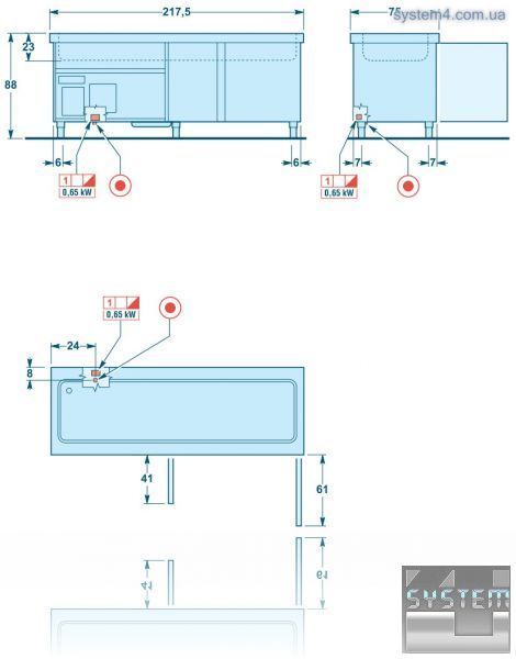 • охлаждаемые емкости, рабочая температура +2...+12 °C, высота 200 мм, вмещает около 130 бутылок 0,5л. в 4 х 1/1 GN, и около 200 в 6 х 1/1 GN;