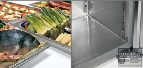 6 полок с 20 закладными под направляющие легко демонтируется для очистки внутреннего объема шкафа.