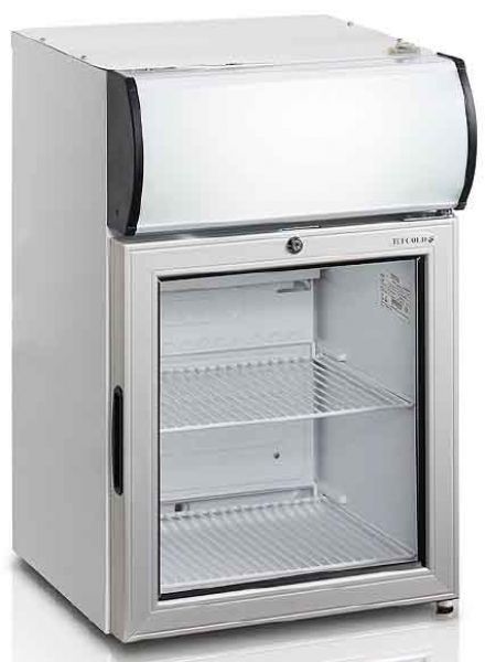 Лайтбокс, що світиться, вгорі універсального холодильника Тефколд надає можливість брендувати корпус холодильника-вітрини. Таким чином, розміщення логотипу товару, що реалізується для реклами, дозволить додатково залучити потенційних клієнтів.