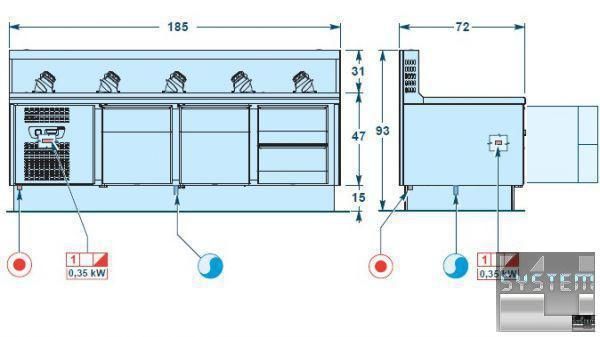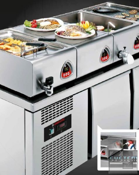 Холодильный стол Angelo Po 6BR19VC спроектирован для поддержки 5 настольных элементов тепловой модульной линии CONCEPT 600, обеспечивает корректное хранение продуктов, рационализируя кухонное помещение и работу поваров.