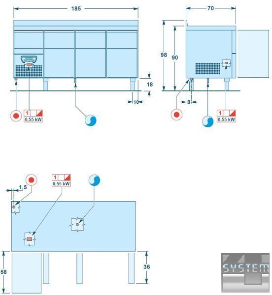 Холодильные столы Angelo Po линейки 6TE - столы со встроенными холодильными агрегатами глубиной 70 см с выдвижным ящиком GN 1/1, который расположен на холодильном блоке, что увеличивает емкость данного оборудования. Объем ящика 24,6 л, размеры: 30,5x54,8x14,7 см.