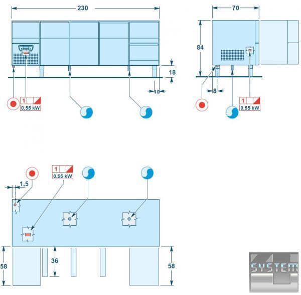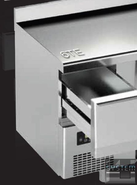 Холодильные столы Angelo Po линейки 6TE - столы со встроенными холодильными агрегатами глубиной 70 см с выдвижным ящиком GN 1/1, который расположен на холодильном блоке, что увеличивает емкость данного оборудования. Объем ящика 24,6 л, размеры: 30,5x54,8x14,7 см.