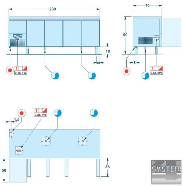 Холодильные столы Angelo Po линейки 6TE - столы со встроенными холодильными агрегатами глубиной 70 см с выдвижным ящиком GN 1/1, который расположен на холодильном блоке, что увеличивает емкость данного оборудования. Объем ящика 24,6 л, размеры: 30,5x54,8x14,7 см.